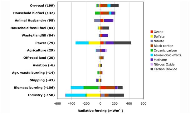 A related study by NASA is available on the same website (http://www.nasa.gov/topics/earth/features/road-transportation.html) found that the transportation sector is the largest contributor to overall warming, not because it is the highest CO2 emitter, but because of the combination of emissions from the sector. Unlike the industrial sector it emits very little in the way of sulphates which act as coolants, thereby partly offsetting the warming of the CO2 emissions. Rather, the sector primarily emits CO2, black carbon and ozone, all of which contribute to warming.