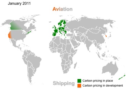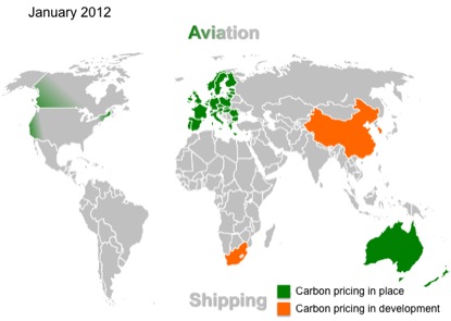 But by year end Australia had a carbon price mechanism in place, South Africa had announced its intention to implement a carbon tax, China was apparently moving forward with a variety of pricing mechanisms and California was finalizing the details of its cap-and-trade system. In addition the inclusion of aviation in the EU-ETS had withstood numerous legal challenges and looked likely to go ahead in 2012.